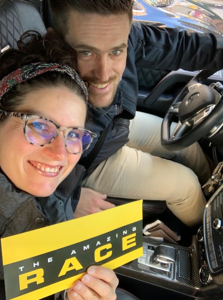 Our older two kids were supposed to be at school, but the day began with my eldest son knocking on our front door, handing me an Amazing Race envelope. I love the Amazing Race. I was watching the shows pretty regularly all year, and the thrill of ripping open that yellow envelope was pretty rad. Before I could even figure out what was happening, he was directing me down to the front yard where Matthew pulled up in my dream car: a Mercedes G Class, playing his song for me. Say what. We took off to the city of Brotherly Love for more adventures when this happened…