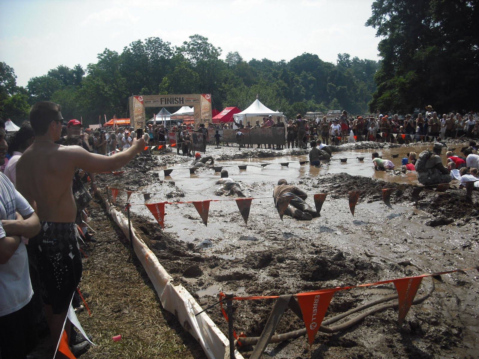 So on Sunday Matt and his brothers (Matt is in the middle of the pit, completely submerged, Will has the orange doo-rag, and Jacob is behind Matt) made Weldon history by participating in the Phiadelphia Merrell Down & Dirty Mud Run! It was a 5k complete with four obstacles, the last being the mud pit. They did a good job, and we got a little dirty ourselves, just watching! I still don’t have a camera, so these are compliments of Jimbo (a friend whose wife and daughter did it as well and we just happened to run into them!) and my camera phone.