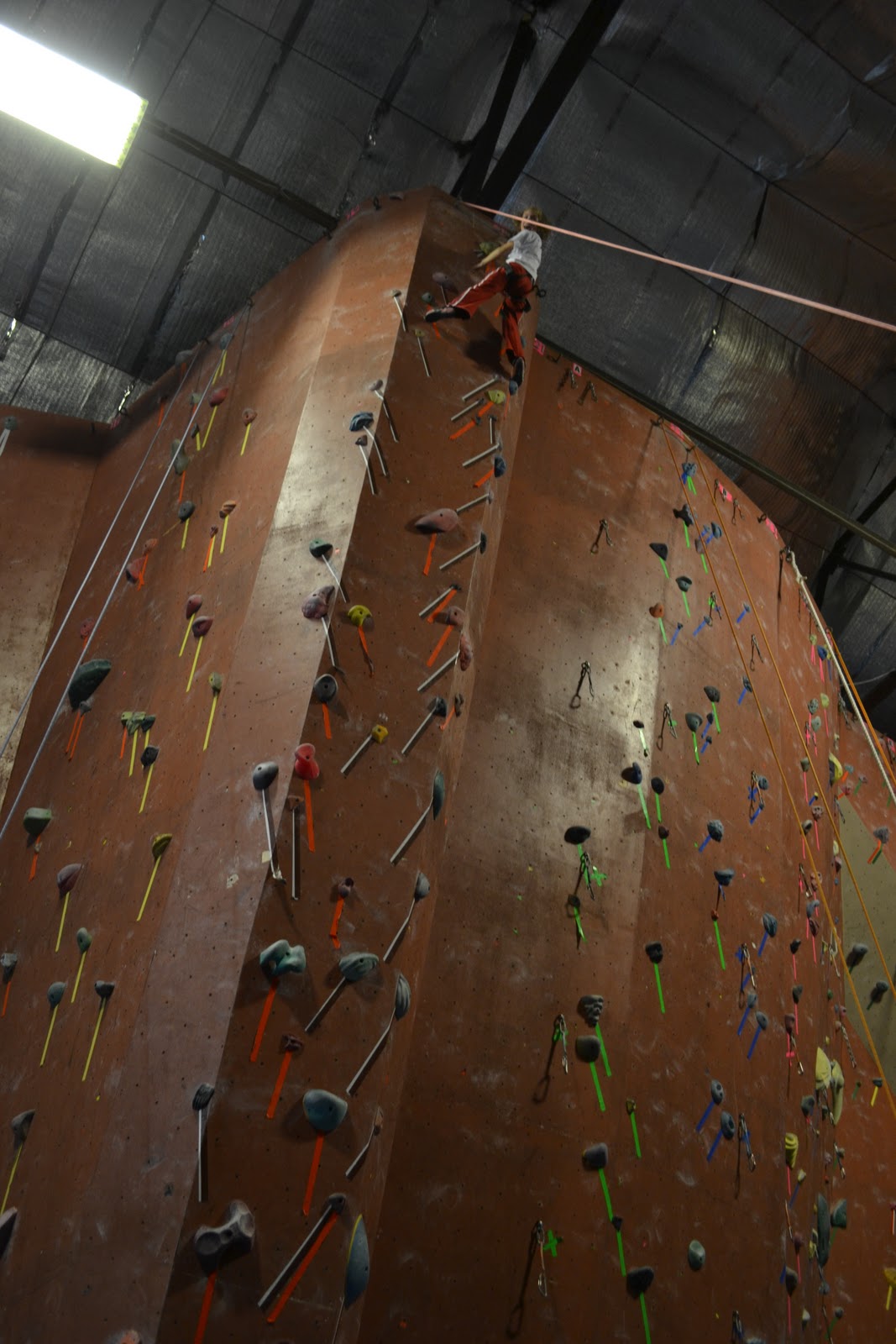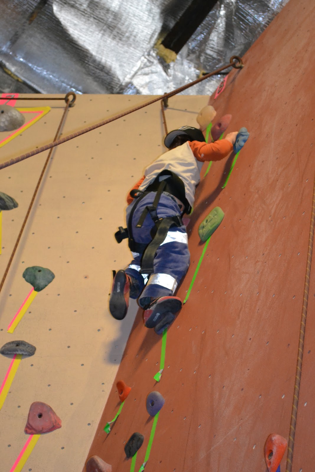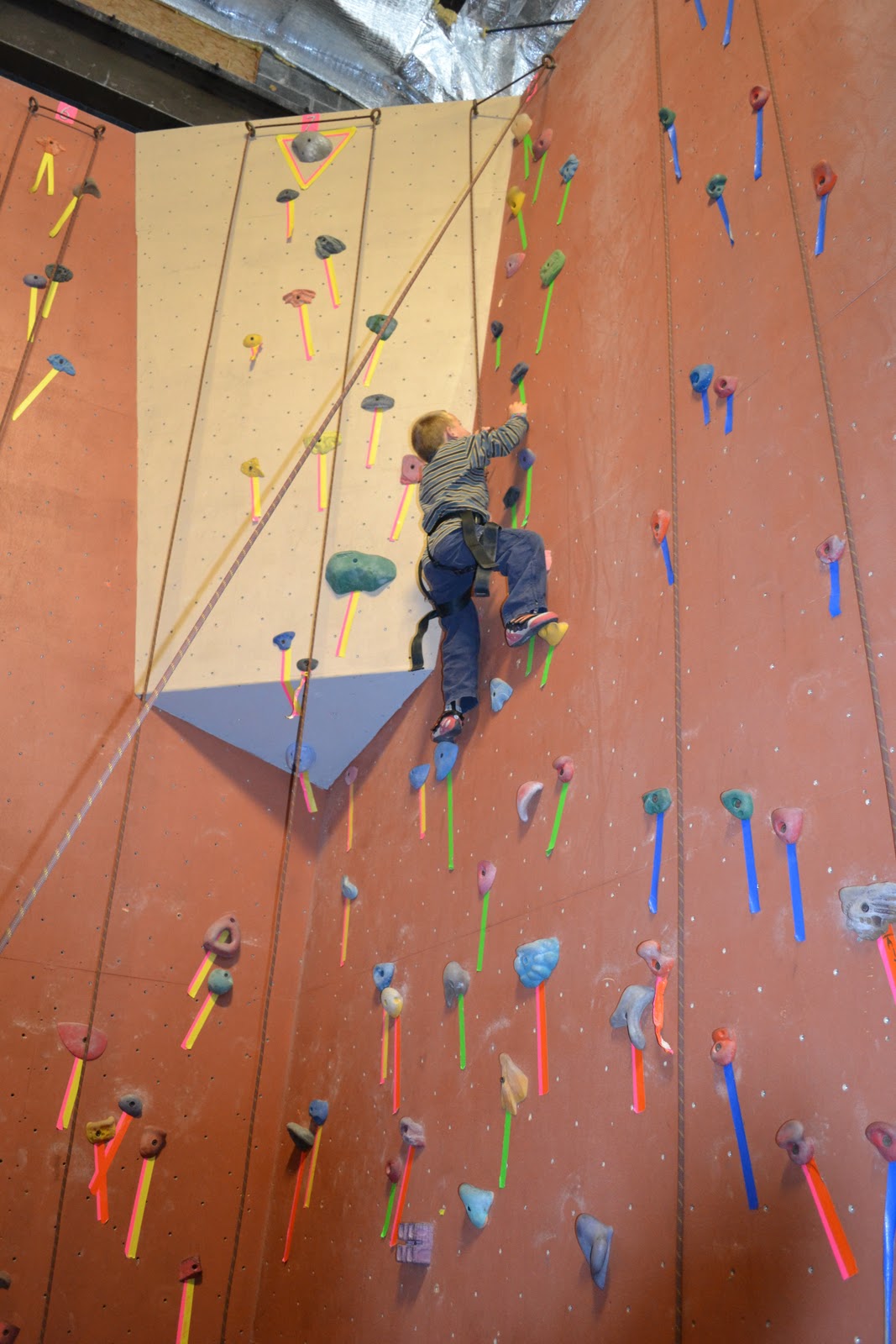 Jack also climbed all the way to the top on his first try, discovered he was really good at coming back down by pushing off the wall, and decided that he would only climb a few feet before bouncing off the wall to get down again.