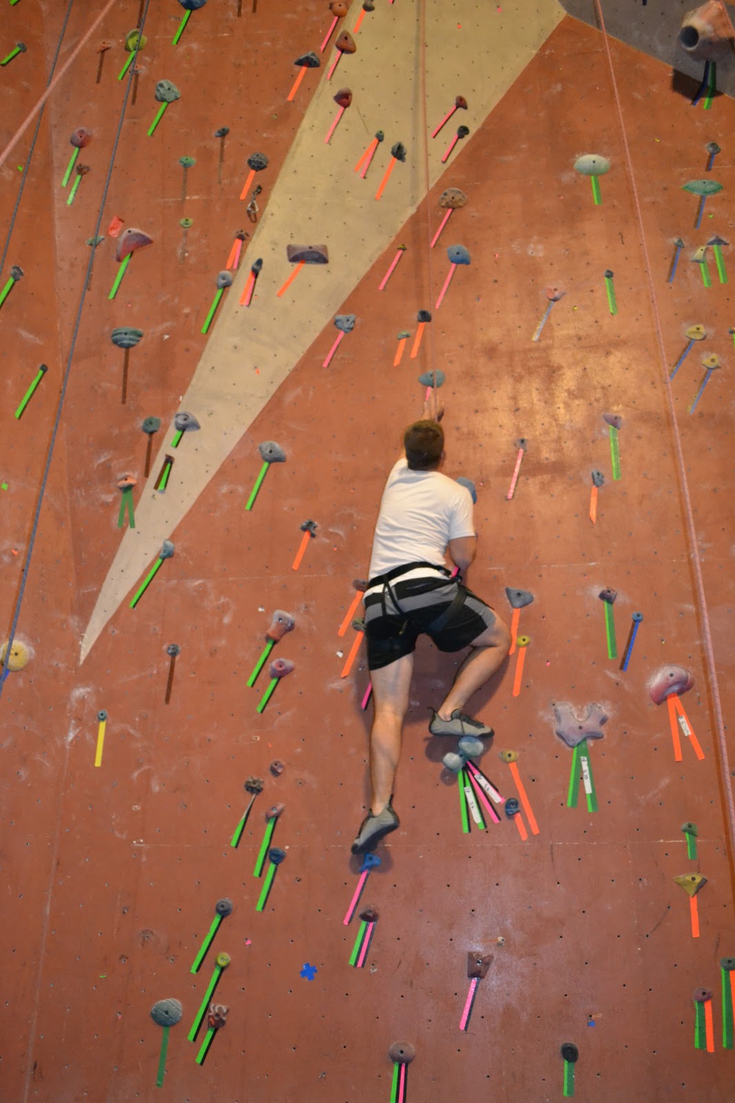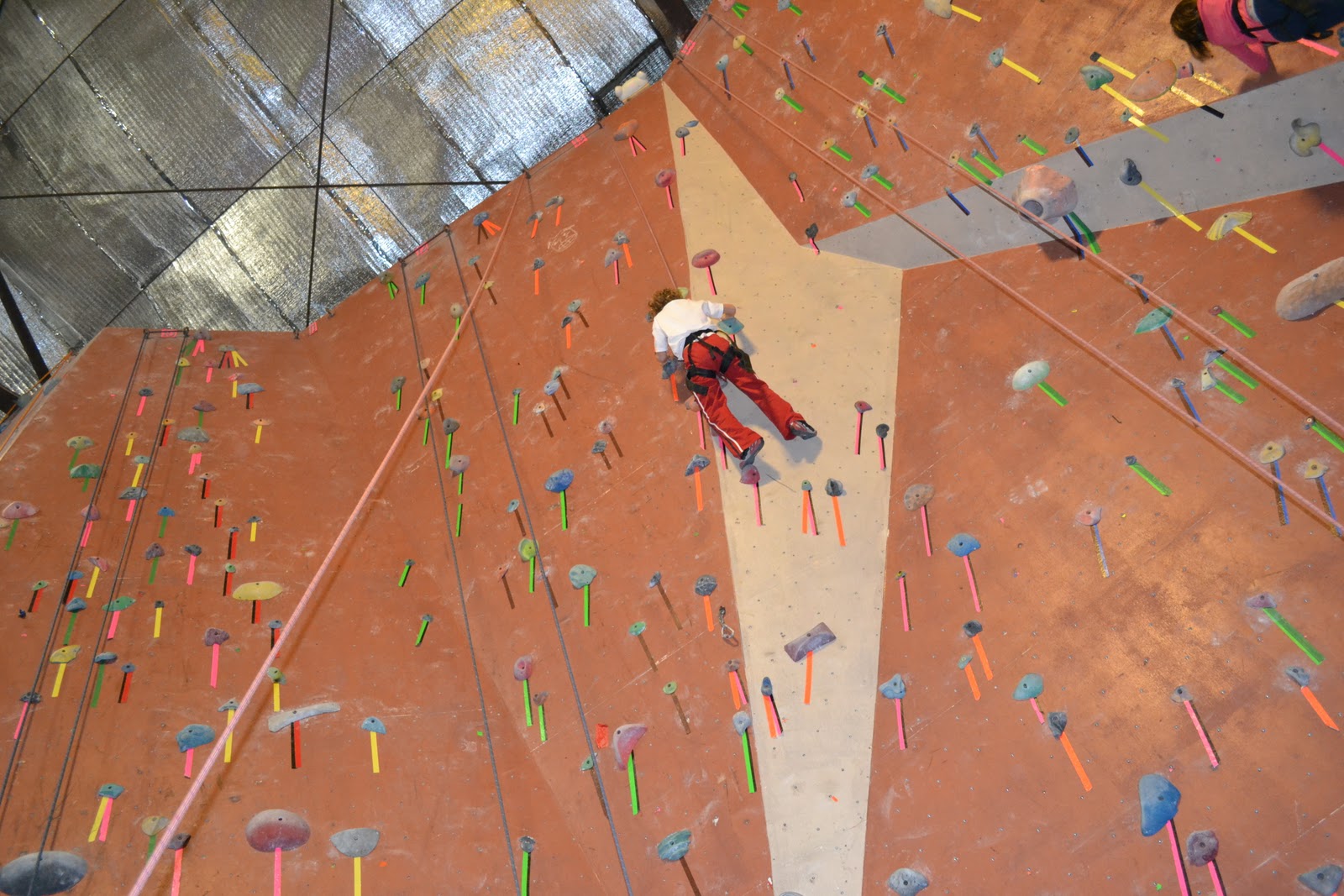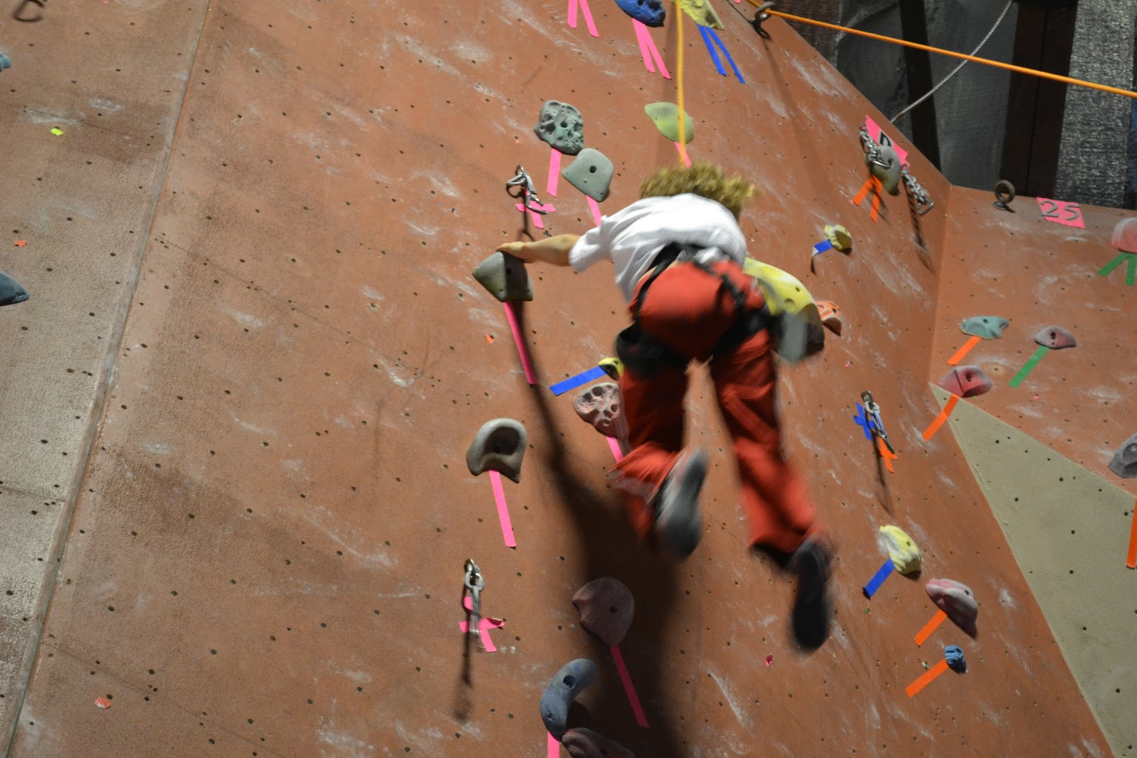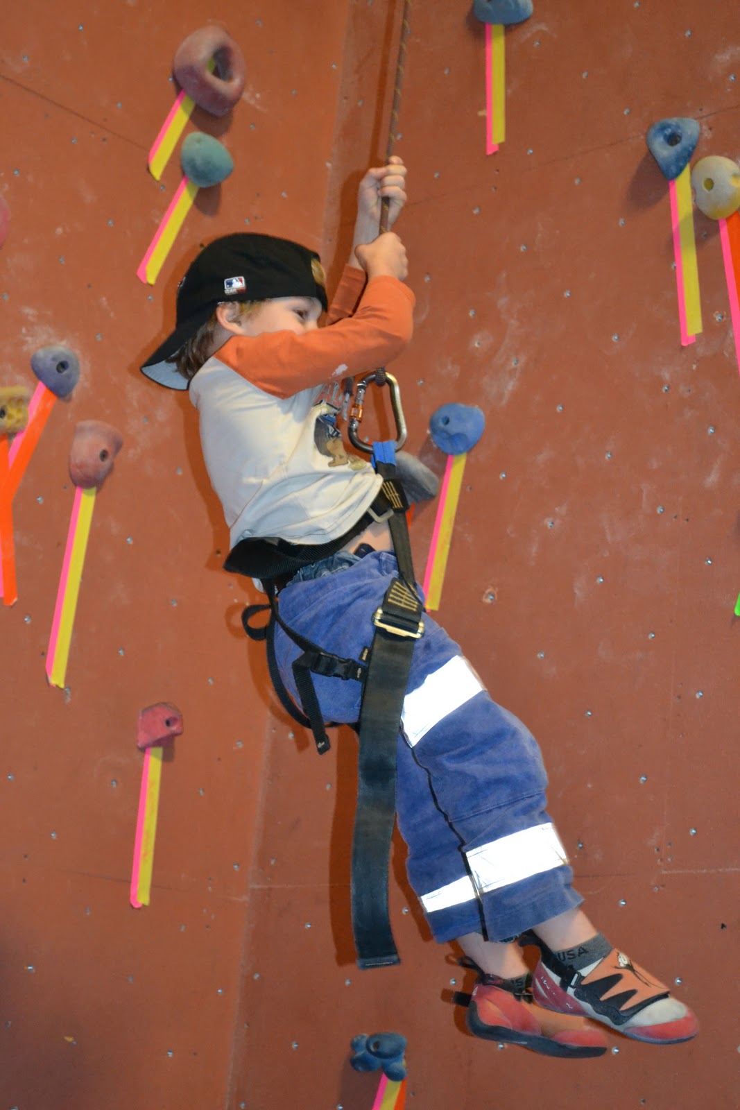 Jack also climbed all the way to the top on his first try, discovered he was really good at coming back down by pushing off the wall, and decided that he would only climb a few feet before bouncing off the wall to get down again.