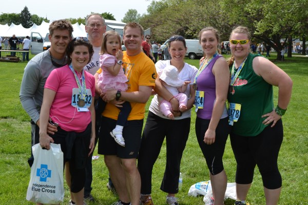 Yesterday morning I barely choked down my peanut butter bagel and hot cup of tea while I nursed Betty. The butterflies woke up in full force and I tried to keep my mind clear for the race ahead. How could it really be a year ago that we ran the Broad Street Run? That day last year it was 90 degrees, humid, and I was pregnant and didn’t even know it! Now my sweet Betty had no idea I was about to leave her for half of the day to do the same thing over again.