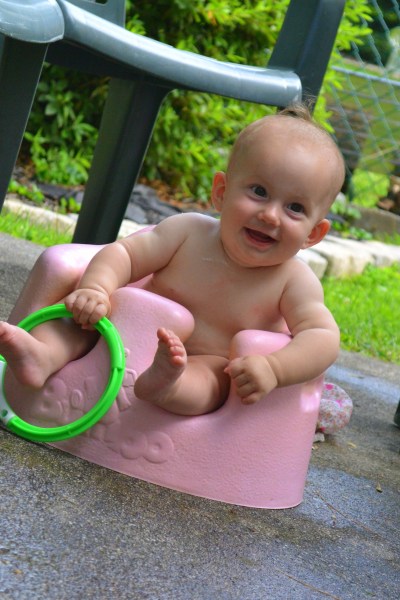 Betty doesn’t say anything profound yet, but she can say, “da da da da da…” She also got her first tooth, with the second close behind it. Her smile is electric, and she just brightens our world.