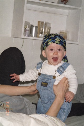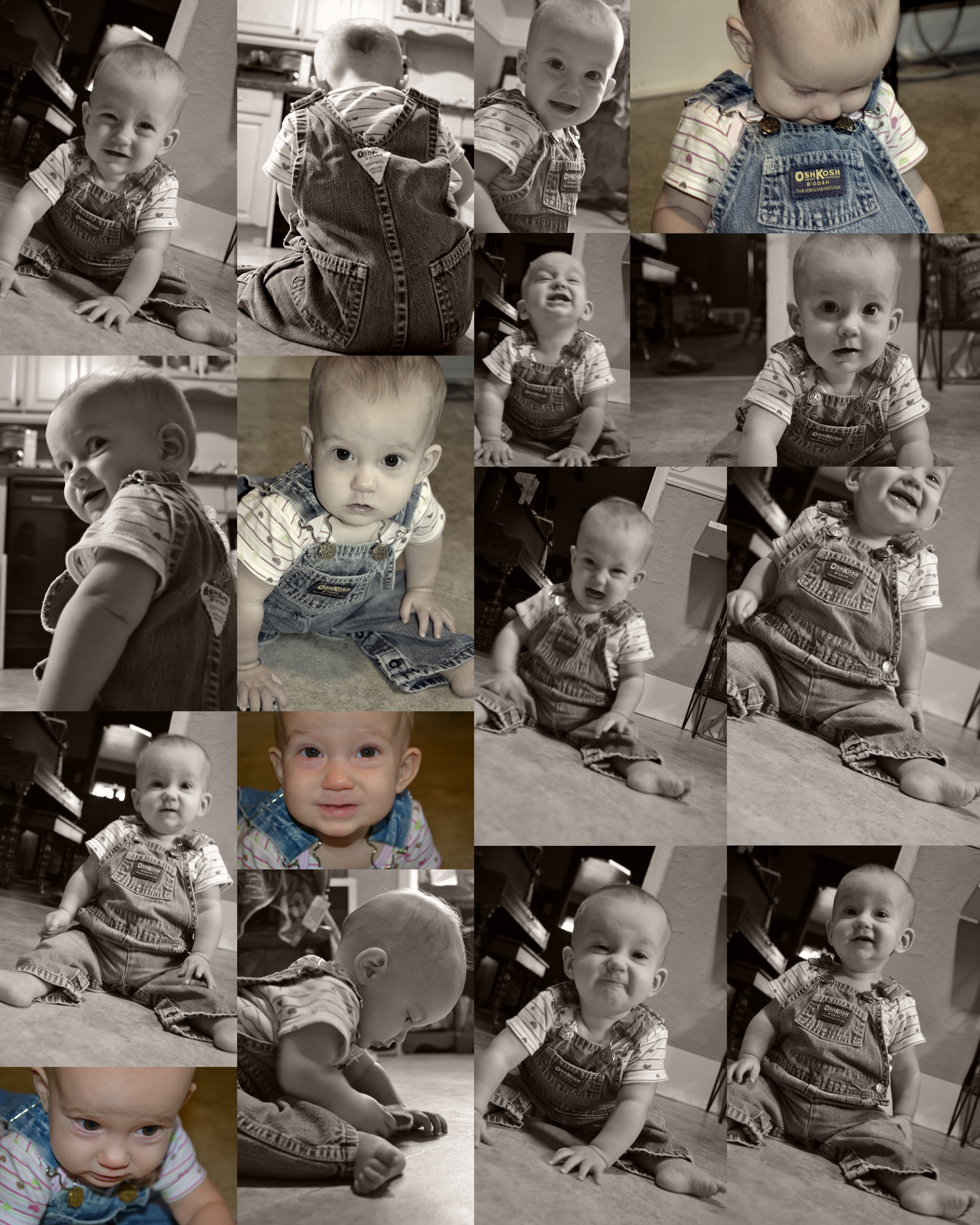 Today she wore the traditional overalls that every baby of mine has worn. When Nadine was born, Matthew’s mom gave them to me and told me that Matthew used to wear them. Everyone has worn them since! I should get some sort of plug from Osh Kosh for their amazing quality. Why, next year they’ll be 30 years old!