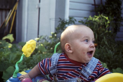 I’m not sure which picture I like best. It’s somewhere between the wrinkly-nose smudge-mouth and the one where I can hear her saying, “Da, da, da, da, da,” Oh, and the one where she’s glancing over her shoulder to make sure I haven’t left her. She has been starting to have mommy-anxiety when I step out of the room, which is something new for me.