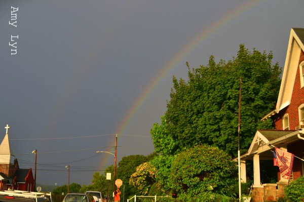 I raced outside during one of this week’s afternoon thunderstorms to this delightful sight… where troubles melt like lemon drops high above the chimney tops…