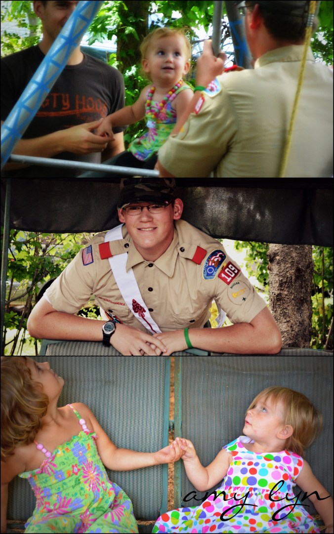 We also went to a birthday party last week for my cousin’s baby. It was fun! I loved it when Matt’s brother, Jacob, came back from his boy scout camping trip and the little girls were all in awe of him. Betty’s face is priceless. She loves her Uncle Jake!