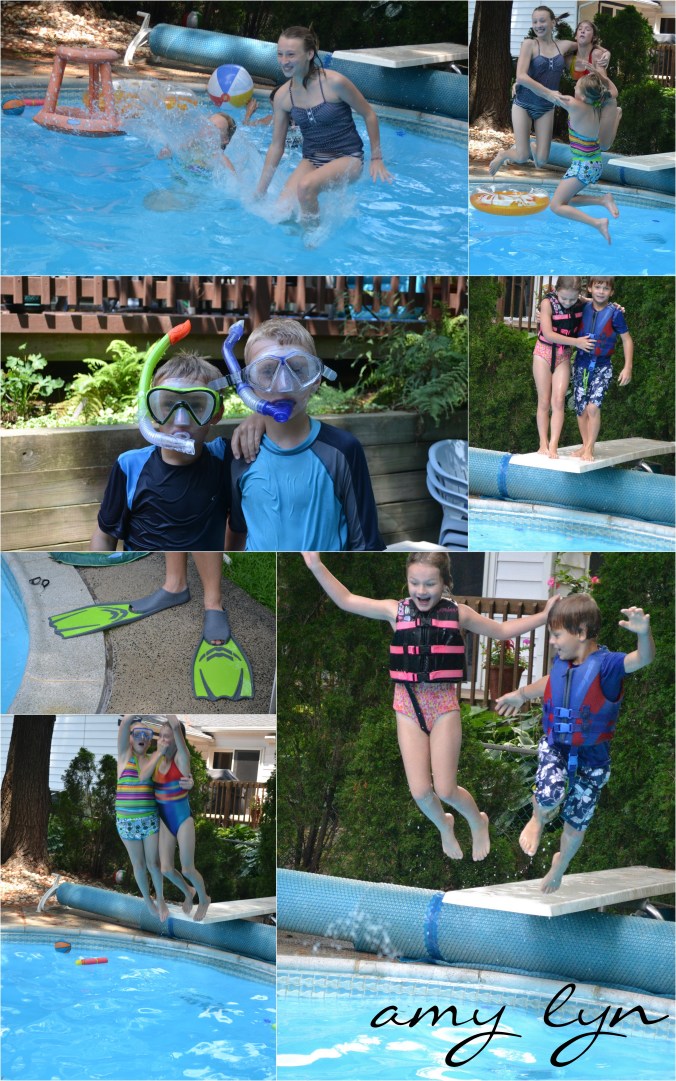 Yesterday we spent the day with our cousins at a friend’s pool. It was better than candy. Betty got into the squirt guns, Elsie is getting more brave and going under the water, and there was much tandem jumping.