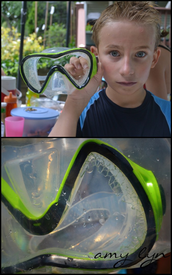 Then, after diving into the pool, Elijah came up out of the water with an odd look on his face. He quickly swam to the edge and kept exclaiming over and over about something, so I went to him and found something extraordinary. His goggles had shattered in the water, and he came up with only a small scratch on his forehead. The older kids were fishing minuscule shards of glass, or whatever they were made out of, from off the bottom of the pool for over an hour. Their fingers were getting cut, confirming how sharp they were. Yet Elijah’s precious eyes were kept safe. I am in awe even now and praise God for His mercies.