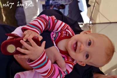 Betty. She truly is the whipped cream on top of my highly caffeinated life with children. She’s into so many things now, like touching the toe kick in the kitchen, where the counter top and floor meet and every crumb collects. Somehow cheerios taste better after they’ve been lodged underneath the dishwasher first. She is my swiffer. Her two little teeth love to chew! She’s a big fan of beef stew and lasagna. She’s such a little peanut, with 6-9 month clothes still a bit roomy. She waves “night night”, signs for “more please” and “all done”. Her resident stylists love to slick her hair up into a cute “Jack Jack” impression. It’s funny, except when one of said stylists licks his hands before applying them to her hair… gross. She takes everything in stride, even if Mommy doesn’t.