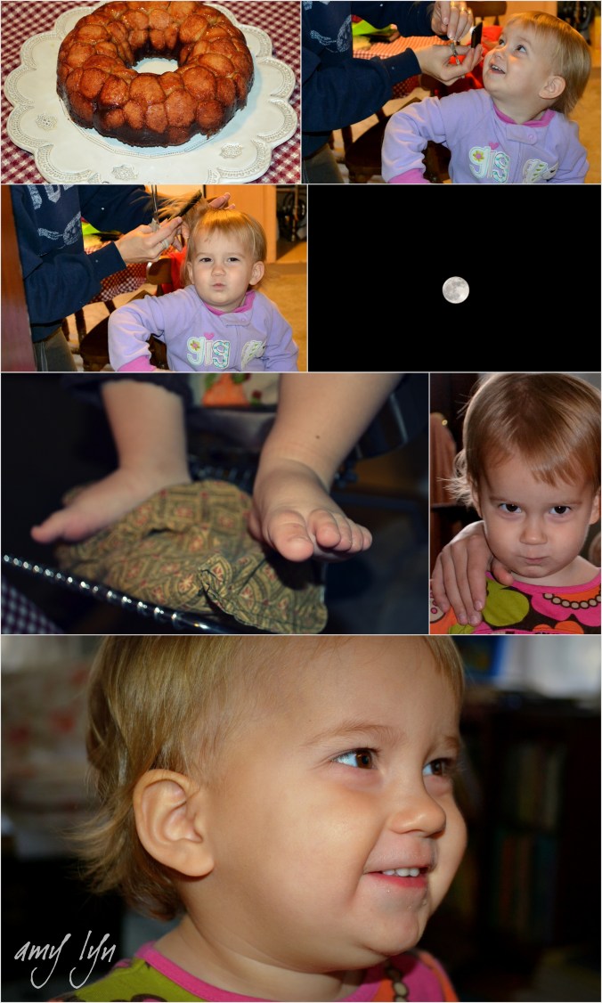 This morning started off with about a quarter cup of cereal. Since that doesn’t divide between five children so well, I used some leftover bread dough for a monkey bread breakfast. Served on my Italy plate, it was a splendid start to our day. Then all of a sudden all I could think about was how long everyone’s hair was, and we had haircuts all around. The boys got spiffed up, and Betty lost her baby mullet. She did a great job, and her whole face looks older. It matches her just-about-two personality.